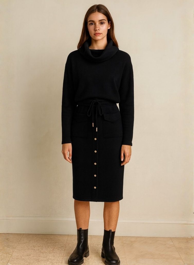 vistenuribel, La colección más elegante para tus looks de Navidad 12 diciembre, 2025 La elegancia del negro: un imprescindible de otoño inviernoEl negro es sinónimo de sofisticación, versatilidad y estilo atemporal. En esta colección de outfits negros para otoño invierno, hemos reunido piezas pensadas para acompañarte durante las fechas más especiales del año: desde comidas familiares hasta cenas de Navidad y eventos nocturnos.Diseños cuidados, tejidos de calidad y siluetas favorecedoras convierten esta selección en una apuesta segura para vestir elegante sin renunciar a la comodidad. Vestidos negros lisos en satén: minimalismo con brillo propioLos vestidos negros de satén destacan por su caída fluida y su acabado sofisticado. Son la elección perfecta para quienes buscan un look depurado pero especial. Detalles como botones joya o aplicaciones discretas elevan estas prendas, haciéndolas ideales tanto para eventos de día como para noches especiales de Navidad.Combínalos con tacón y accesorios metalizados para un resultado impecable.Jacquard negro: textura y elegancia atemporalLos vestidos negros en tejido jacquard aportan riqueza visual y un aire distinguido sin necesidad de estampados llamativos. Su estructura y relieve los convierten en una opción excelente para celebraciones formales, comidas navideñas o eventos donde quieres destacar con discreción.Un clásico renovado que nunca pasa de moda. Vestidos combinados con chanel: sofisticación con carácterPara quienes buscan un look más especial, los vestidos negros combinados con tejido tipo chanel aportan contraste, elegancia y un punto couture. Son prendas que hablan por sí solas, perfectas para ocasiones señaladas en las que quieres marcar la diferencia con un outfit refinado y femenino. Conjuntos y faldas de punto: calidez y estilo para el día a díaLa colección también incluye conjuntos cálidos de punto y faldas negras, ideales para los meses más fríos del invierno. Diseños cómodos pero muy cuidados, pensados para looks de diario elegantes, comidas navideñas informales o planes donde la comodidad es clave sin perder estilo.El negro, combinado con texturas suaves y cortes limpios, se convierte aquí en el mejor aliado del invierno.Looks negros perfectos para NavidadEsta colección demuestra que el negro es siempre una buena elección en Navidad. Atemporal, favorecedor y fácil de combinar, permite crear estilismos elegantes año tras año. Desde vestidos sofisticados hasta conjuntos más relajados, cada prenda está diseñada para acompañarte en momentos especiales.🖤 Descubre la colección completa y encuentra tu outfit negro ideal para este otoño invierno. Comparte esto:TwitterFacebookLinkedInWhatsAppPinterestMe gusta esto:Me gusta Cargando...