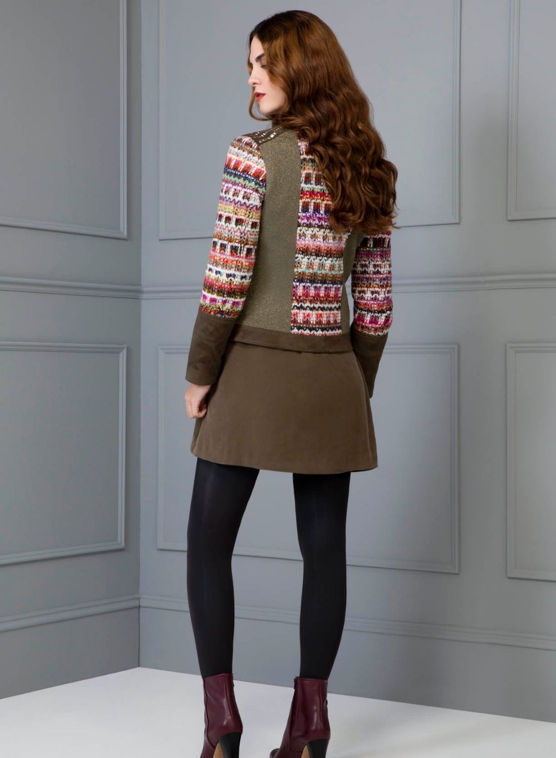 Chaqueta corta combinada con tejido multicolor y detalles efecto ante