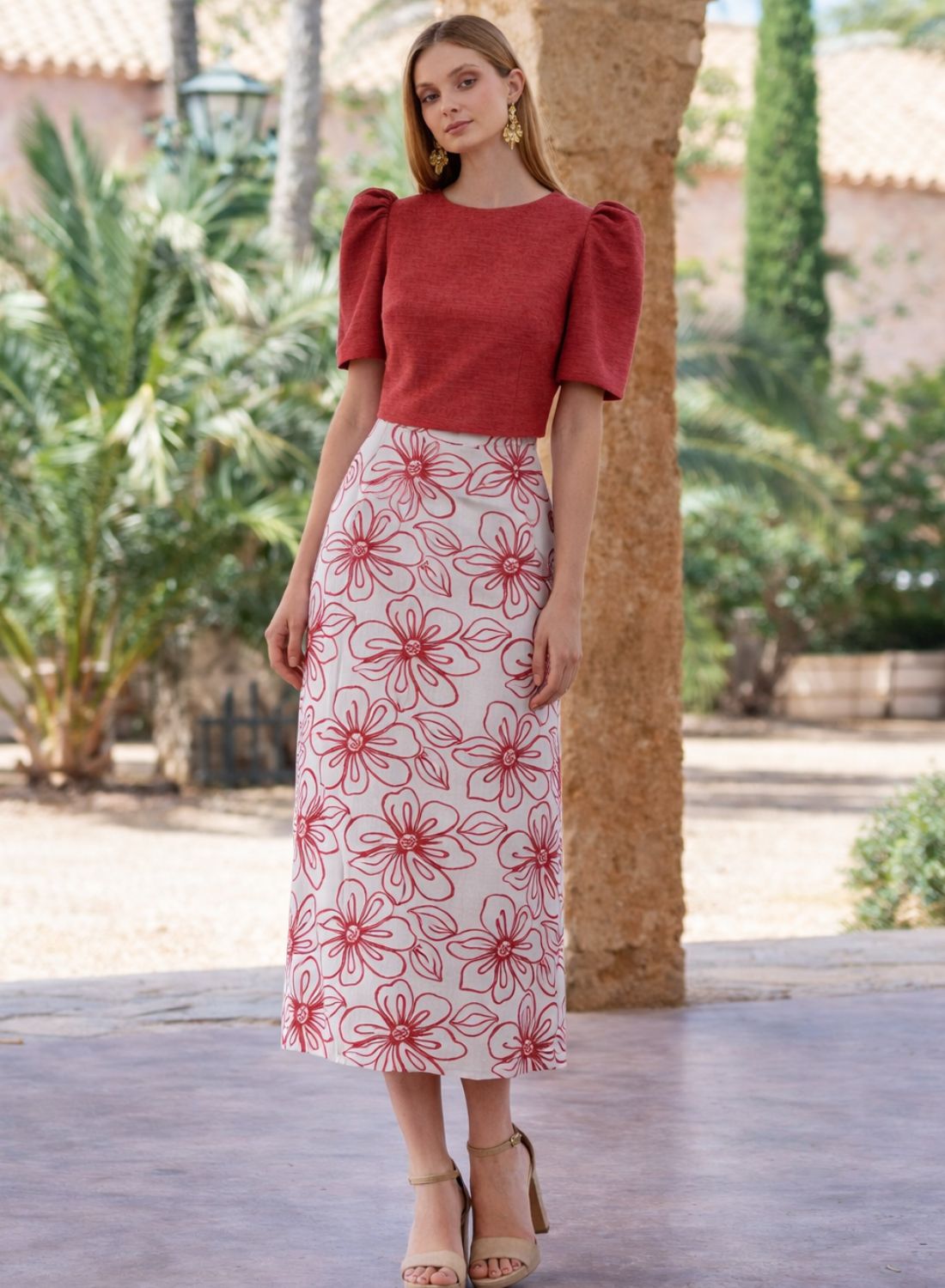 Para un resultado impecable, combínala con nuestro top al tono, creando un conjunto coordinado ideal para comuniones, celebraciones y looks de invitada sofisticados. Añade sandalias neutras o doradas y accesorios discretos para completar un estilismo equilibrado y actual.