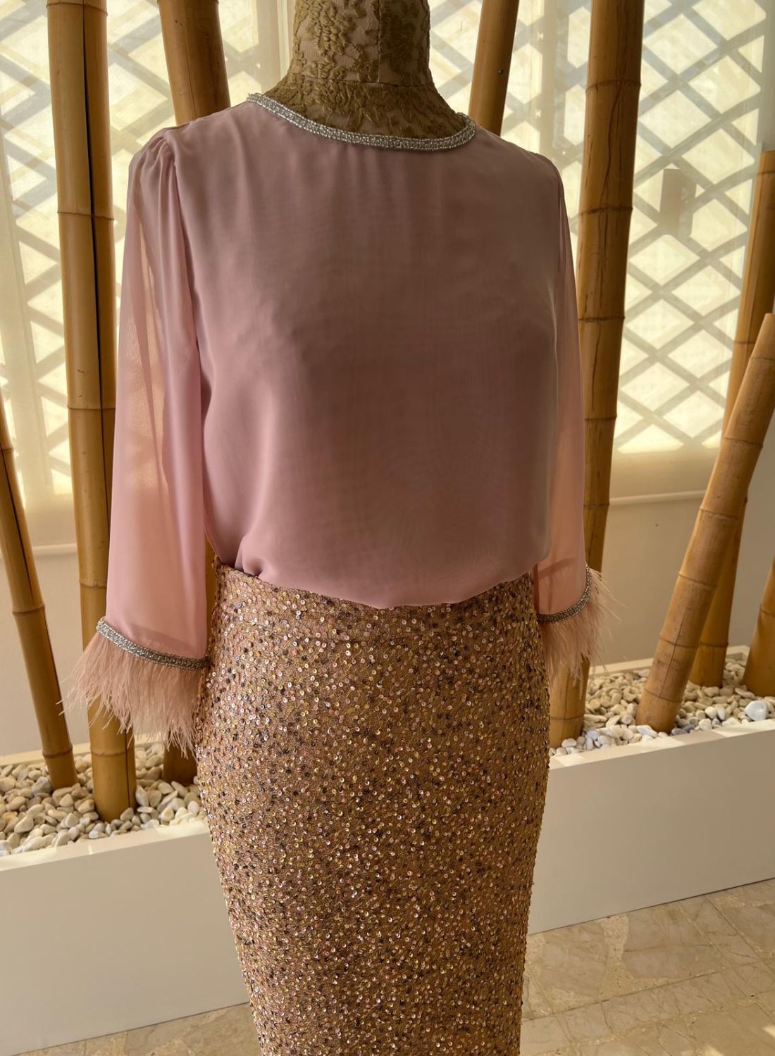 Brilla con elegancia en tu próximo evento con esta falda entubada de lentejuelas. Su diseño midi y corte ajustado estilizan la figura, aportando un toque sofisticado y femenino. Perfecta para invitadas de boda, cócteles y ocasiones especiales, combina glamour y comodidad en una sola prenda.