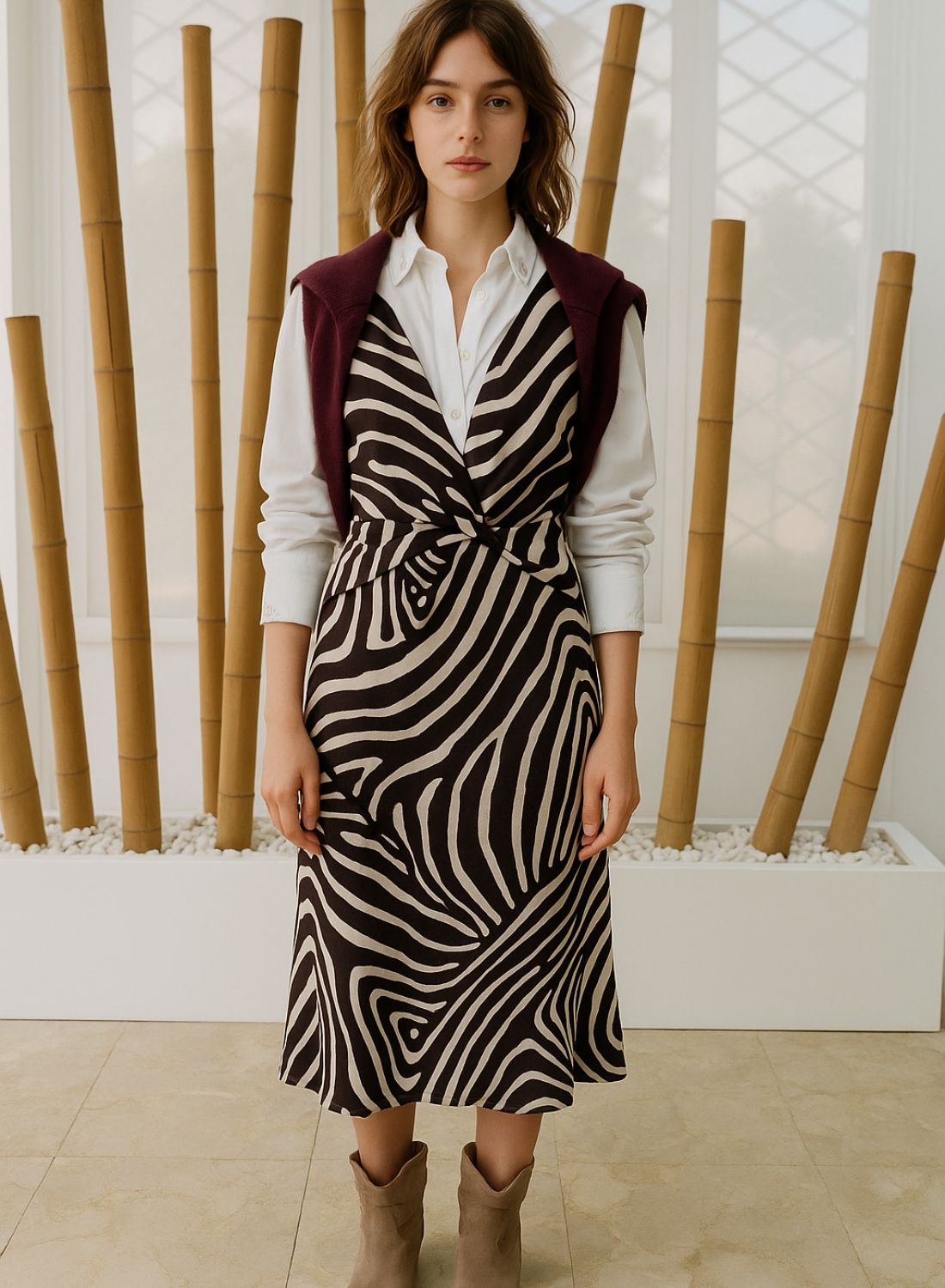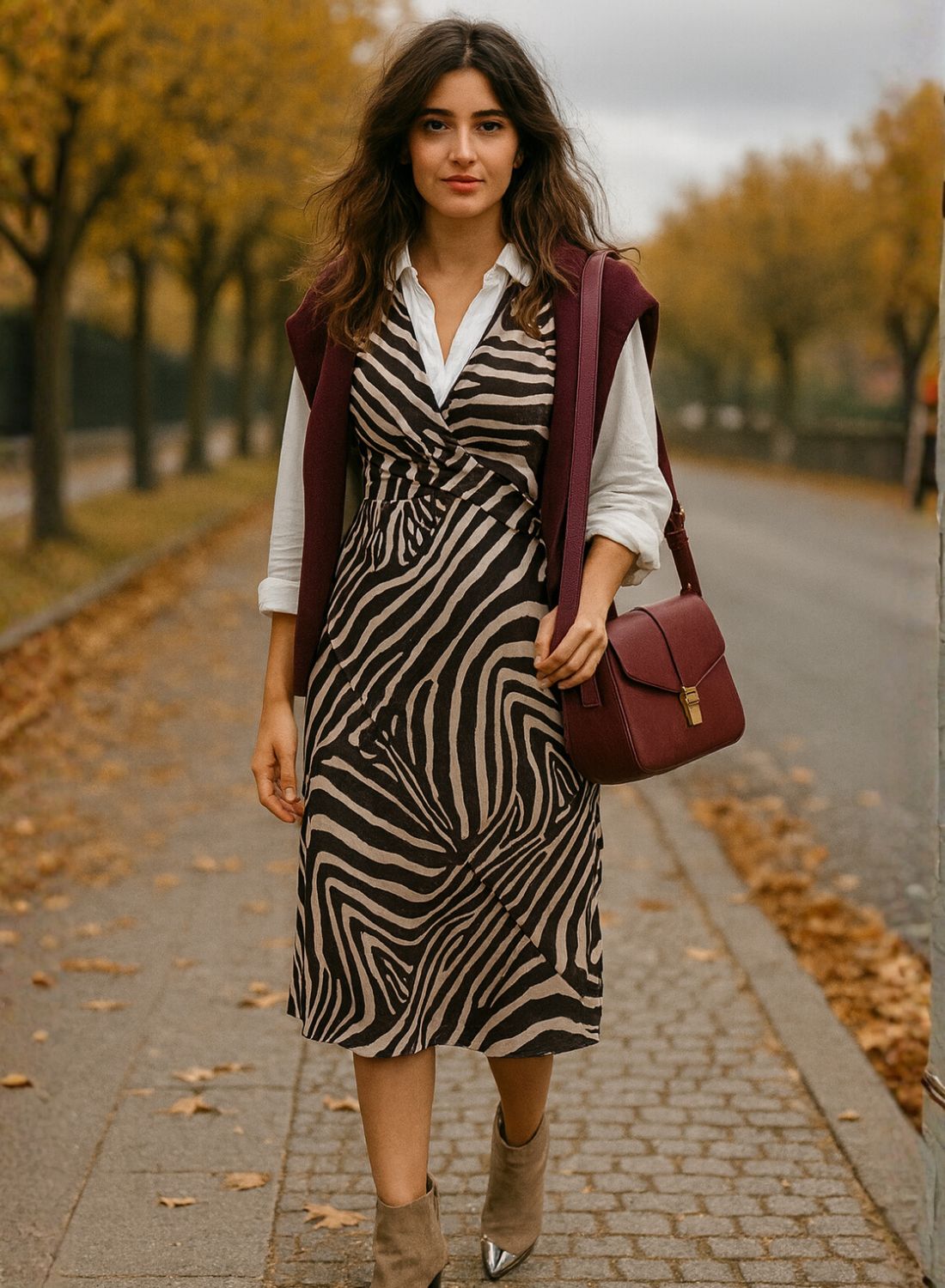 Ahora, hablemos de los estampados porque aquí es donde realmente se pone interesante. Tenemos dos opciones espectaculares para elegir. La primera es un estampado de cebra en tonos marrones y blancos. Este diseño es perfecto para quienes buscan algo más sobrio pero con un toque salvaje. Es ideal para combinar con accesorios en tonos tierra o incluso con algo metálico para darle un poco de brillo.